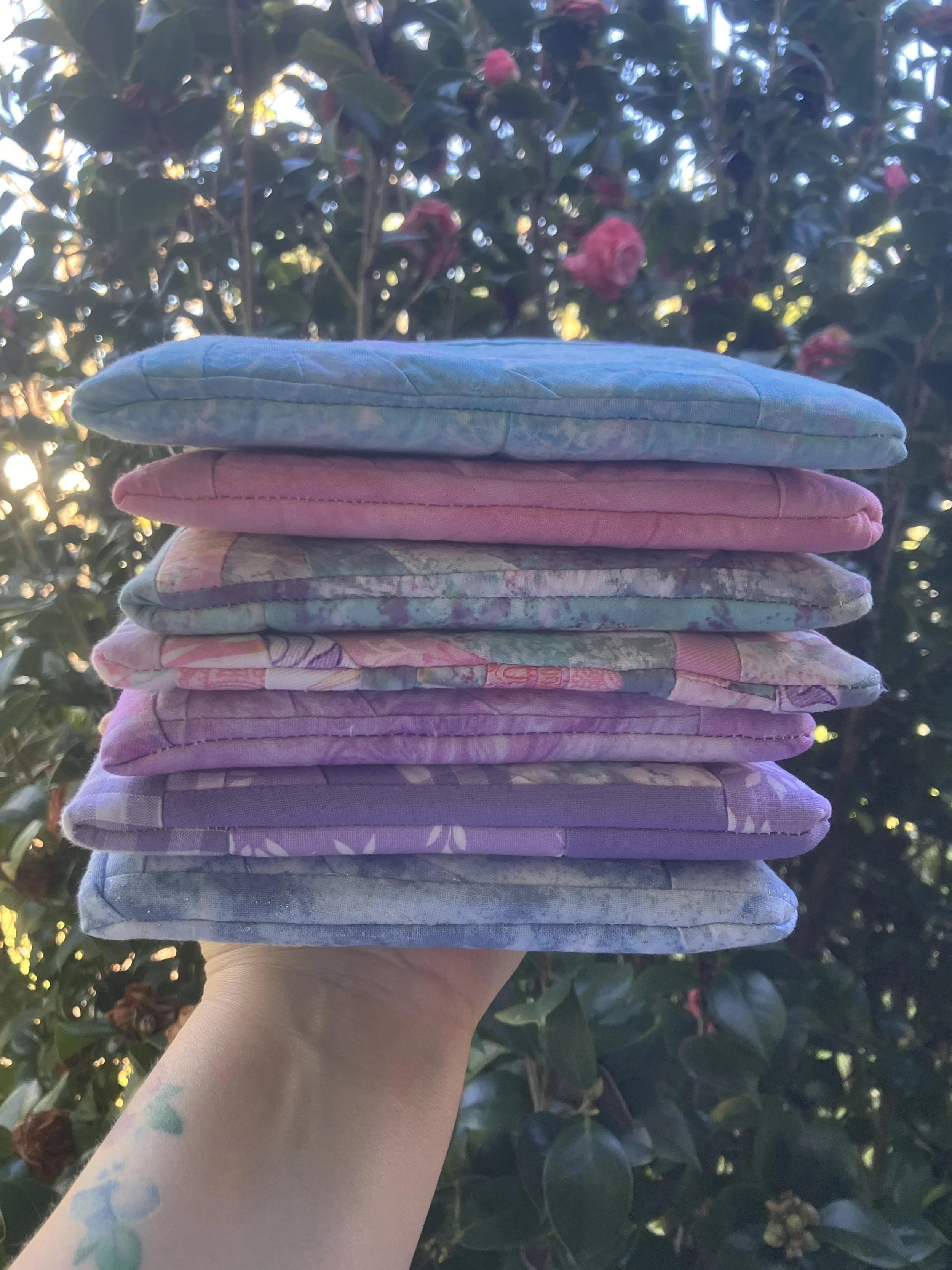 Then, in came The Pretty Puff kindle bag which of course required a different size square to be cut and a little trouble shooting to perfect the pattern. However, when by the 3rd try it was perfect and I was in LOVE and so I made six more to share with you.